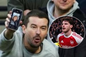 报道称,在Shutterstock拍摄的一张照片中,在热刺主场的主队看台上,有一个人的手机屏幕上显示着赖斯妻子弗莱尔的照片,这位球迷朝着身前的赖斯挥舞手机,试图挑衅他。