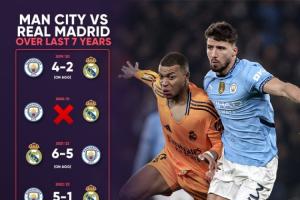 皇马与曼城再欧冠共有过交手15场,其中有12场是在淘汰赛中,淘汰赛皇马4次晋级,曼城2次。小组赛3场交手两队各1胜1平1负。