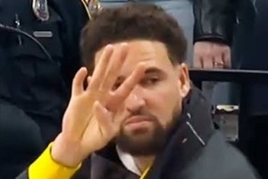 曾效力于德克萨斯大学的杜兰特在INS上晒出了克莱“四根手指”表情包,庆祝母校晋级四强。