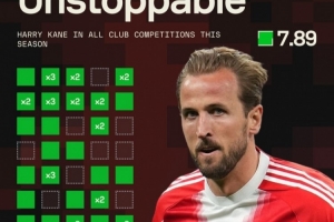 据Sofascore统计,凯恩本赛季为拜仁出战41场比赛,打进49球,仅10场比赛未破门,从未连续3场比赛无进球。
